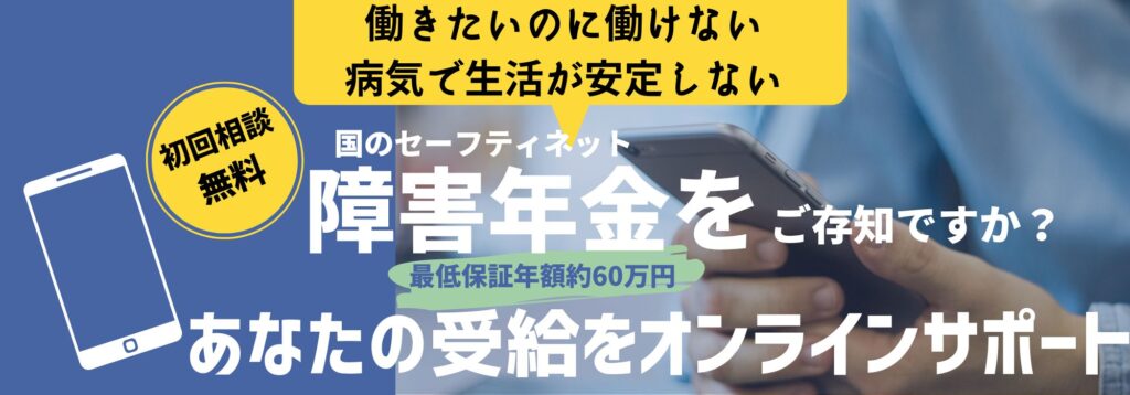 「療養のあんしんお手伝い」という想いを持って、メールと郵送で完結する障害年金オンラインサポートをいたしております。